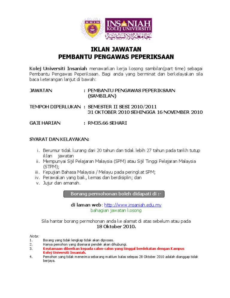 Iklan Jawatan Pembantu Pengawas Peperiksaan PDF