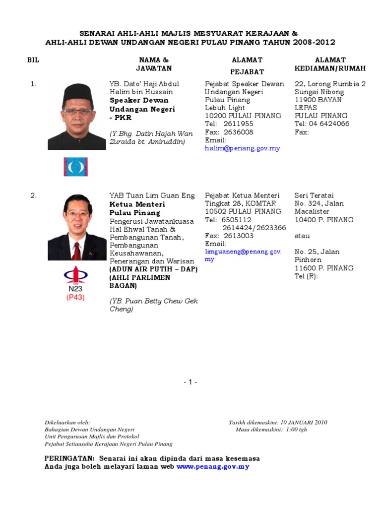 MP Senator & Ketua Jabatan Di Pulau Pinang-Terkini PDF